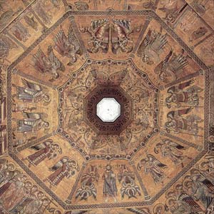 ...Dieses Gittermuster wurde dann in kürzester Zeit immer komplexer und sah bald wie ein Seeigel ohne Stacheln oder wie Michelangelos Kuppel der Sakristei von San Lorenzo aus. Bald sah ich alles in Form von Fensterrosetten oder besser durch Rosetten von unendlicher, wunderschöner Vielfalt. Zum ersten Mal war das Mandala verständlich..... Das Zentrum des Mandala erschien mir wie ein Ort, den man aufsucht, wenn man sich einen Wechsel zu einer anderen Schwingungs- oder Bewusstseinsebene wünscht......
