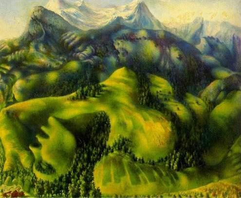 Kaleidoskopbilder, symmetrische Gruppierungen spitziger Gegenstände. Dann...hauptsächlich ein unendlich großes Feld voll goldener Juwelen, besät mit roten grünen Steinen, die sich dauernd veränderten... Ich sah Felder, dicht besät mit Juwelen, einzeln oder in Haufen, manchmal brillant funkelnd, manchmal matt glühend. Unter meinem Blick sprangen sie auf zu blumenähnlichen Gestalten und schienen sich dann in herrliche Schmetterlingsformen oder in endlose Muster glitzernder, irisierender faseriger Flügel wundervoller Insekten zu verwandeln, manchmal dagegen war es mir, als starrte ich in ein riesiges hohles Gefäß auf dessen